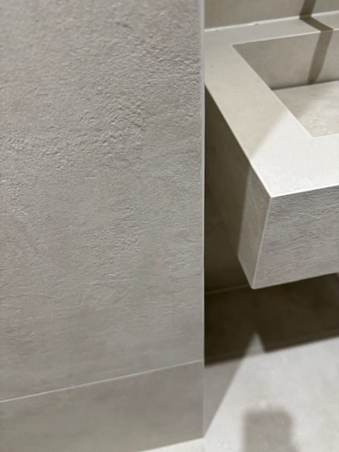 On this occasion we were asked instead of fitting a basin to design one completely out of tiles to fit the contours of the bathroom and heres what we made.